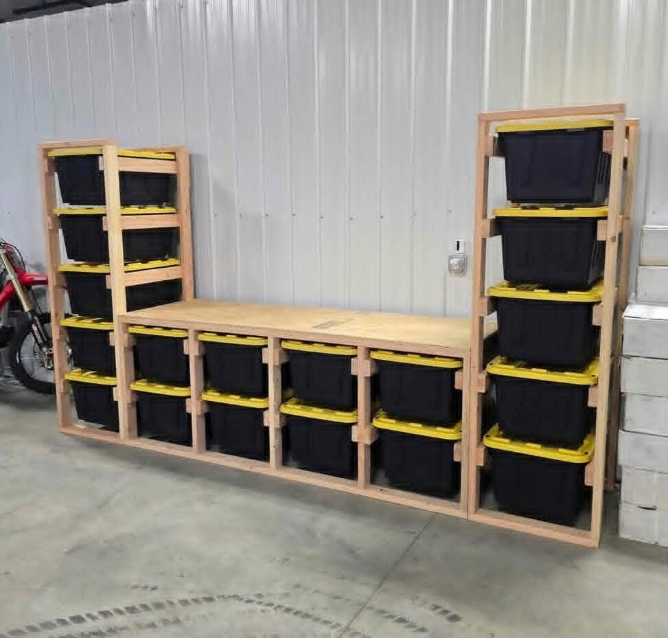 We design and build shelving systems made for 27-gallon totes and other bulky storage. Every solution is tailored to fit your space and maximize organization, so your garage works as hard as you do.